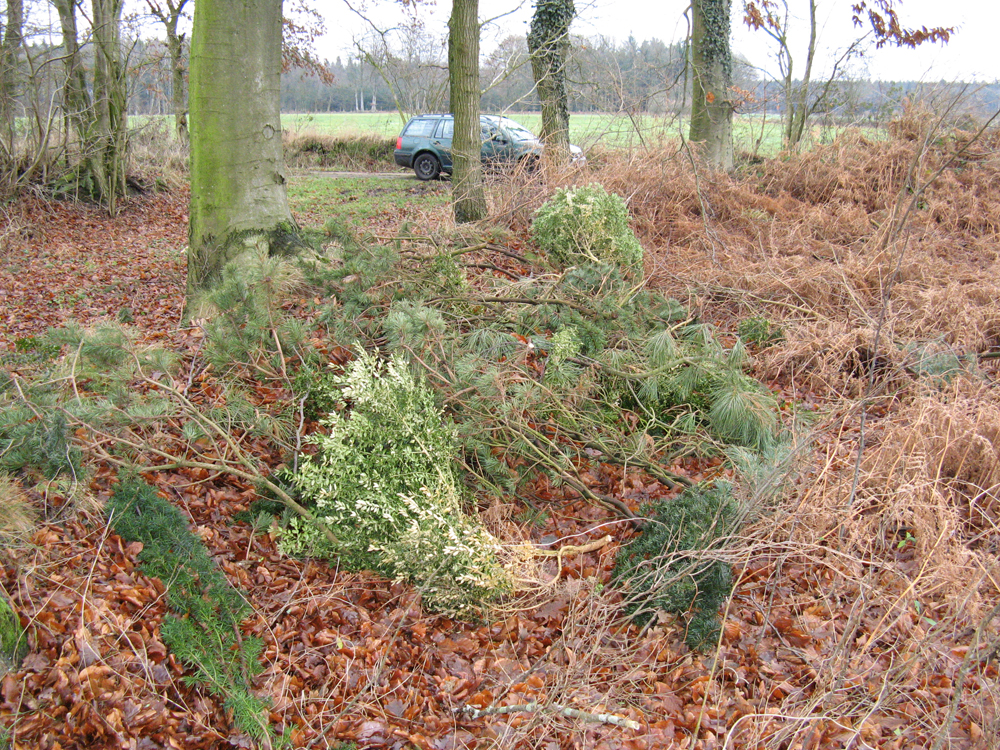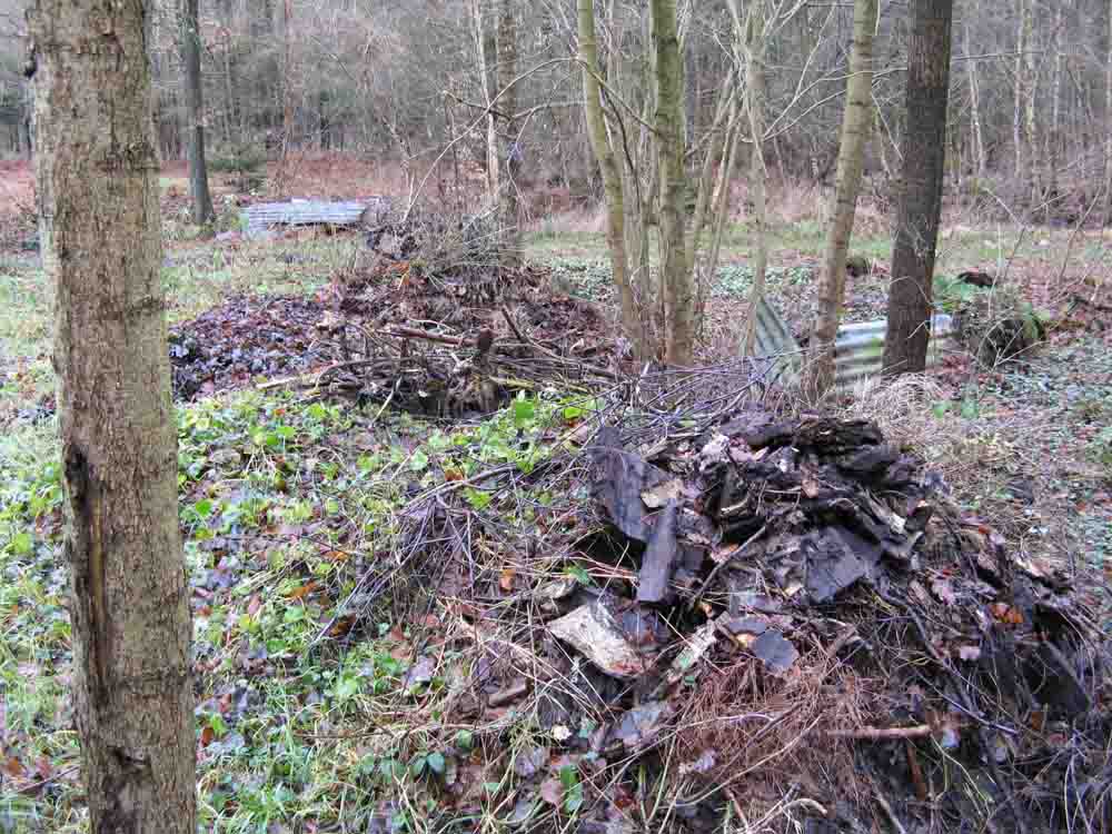 dem Wald waren an vielen Stellen Gartenabfälle abgeladen worden,