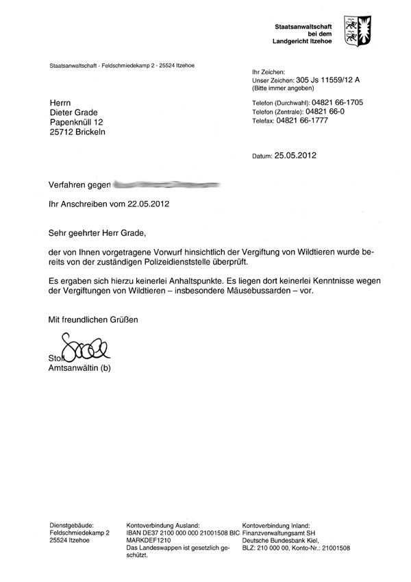 Schreiben der Staatsanwaltschaft