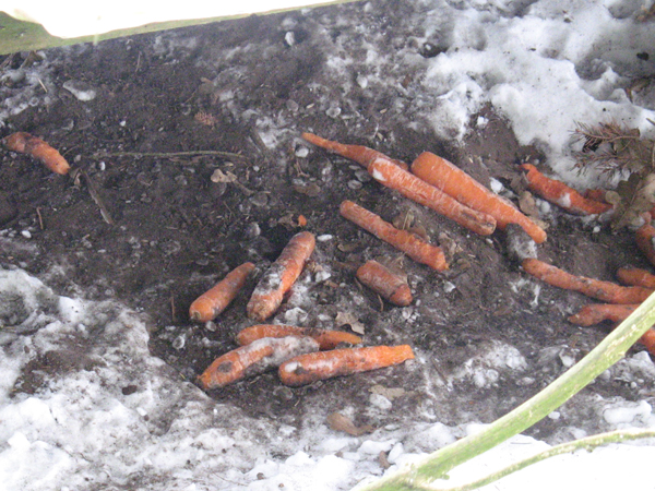 wieder finde ich Plätze, auf denen Rüben, Möhren oder Heu ausgelegt werden,